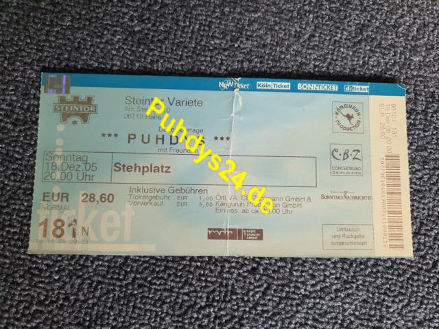 Titel: Konzertticket aus Magdeburg 30 Jahre Puhdys