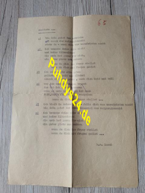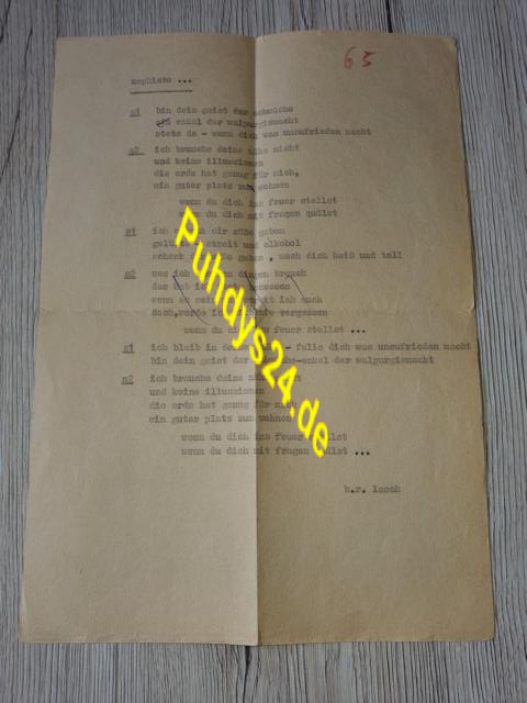 Info: Das Papier stammt im original von Burkhatd Lasch und wurde zur Ansicht an die Puhdys (Peter Meyer) gesendet